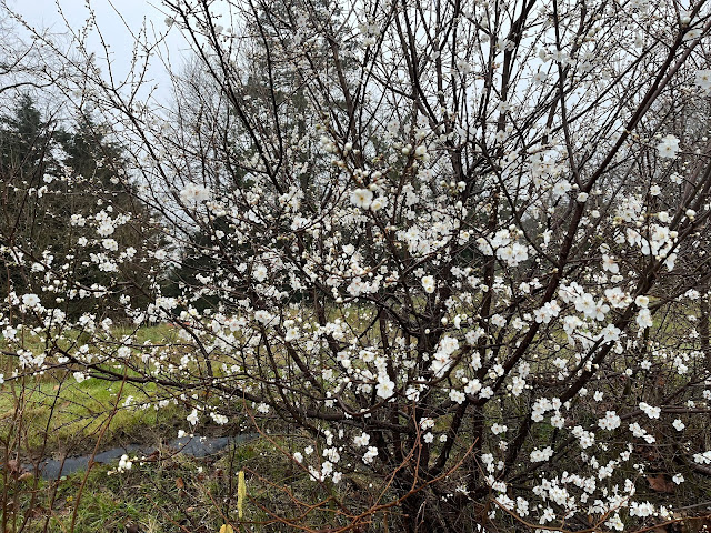 Oh how lovely, so nice to see some blossom at this time of year. Very strange winter here in S Ontario, some half hearted snow falls back in Dec and possibly early Jan, but nothing since. I can see green grass everywhere, no snow, cloudy and dull every day where it's usually bright and sunny and crisp. My son and family are already tapping their walnut trees to make syrup.... very early> I don't think the snow tires on my car have actually encountered any worth while snow, and my big boots just sit in the cupboard waiting for their turn. Perhaps I am tempting fate to bring a huge snow storm by telling you this!!!!!